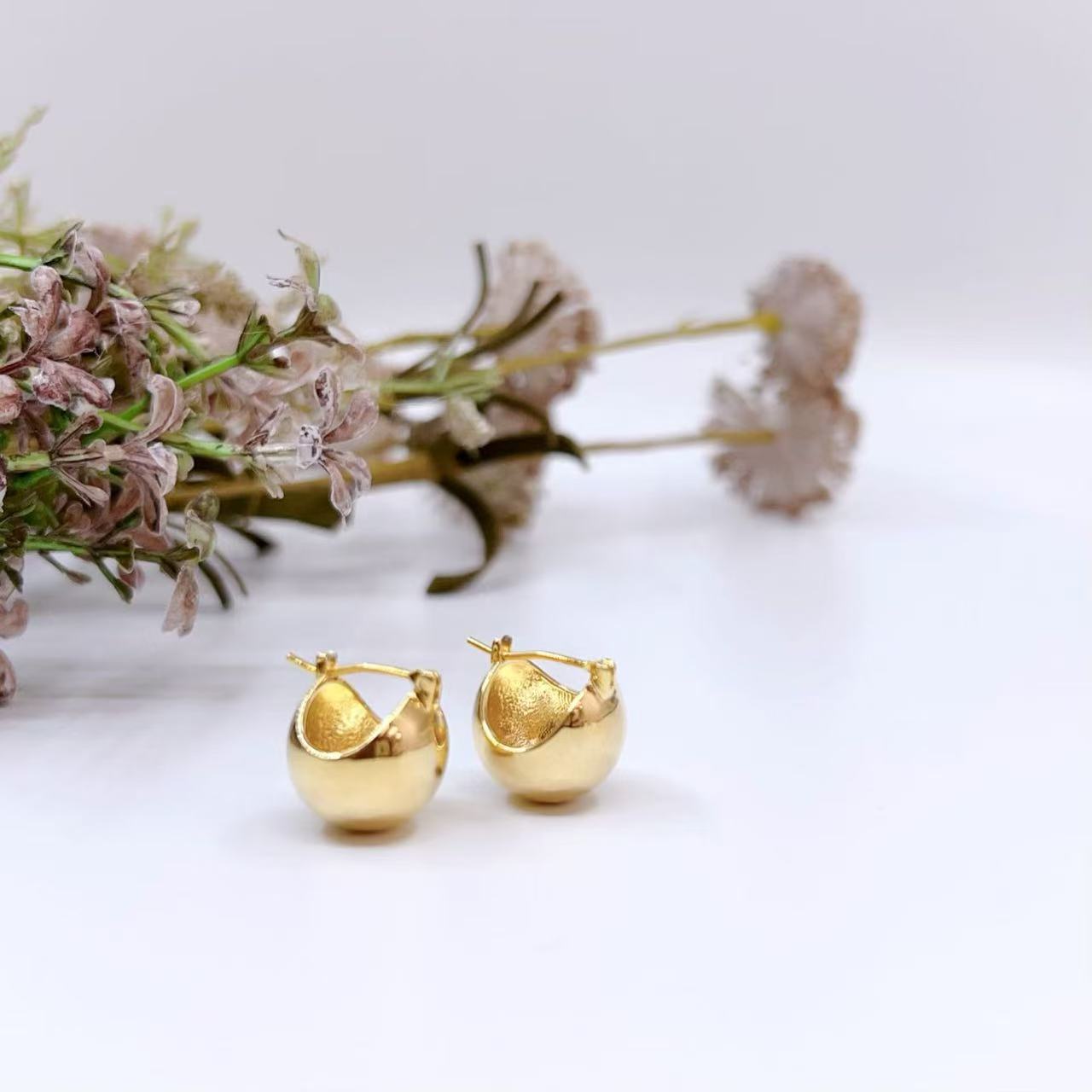 Add a touch of vintage charm with these dome-style bubble hoops. The puffy, half-sphere design creates a soft retro silhouette while maintaining a clean, modern look. A flattering pick for both casual and dressy outfits.