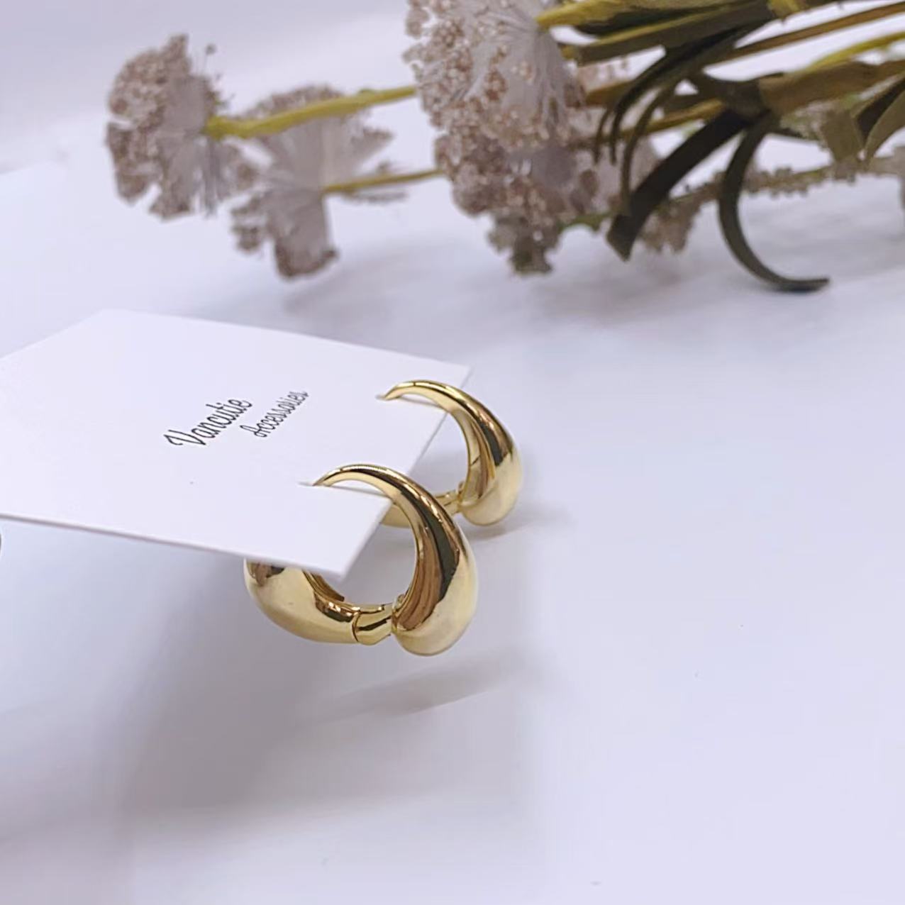 Sleek and sophisticated — these chunky teardrop hoops make a sculptural statement. The bold, rounded silhouette offers volume and shine without feeling heavy, adding effortless charm to any outfit.