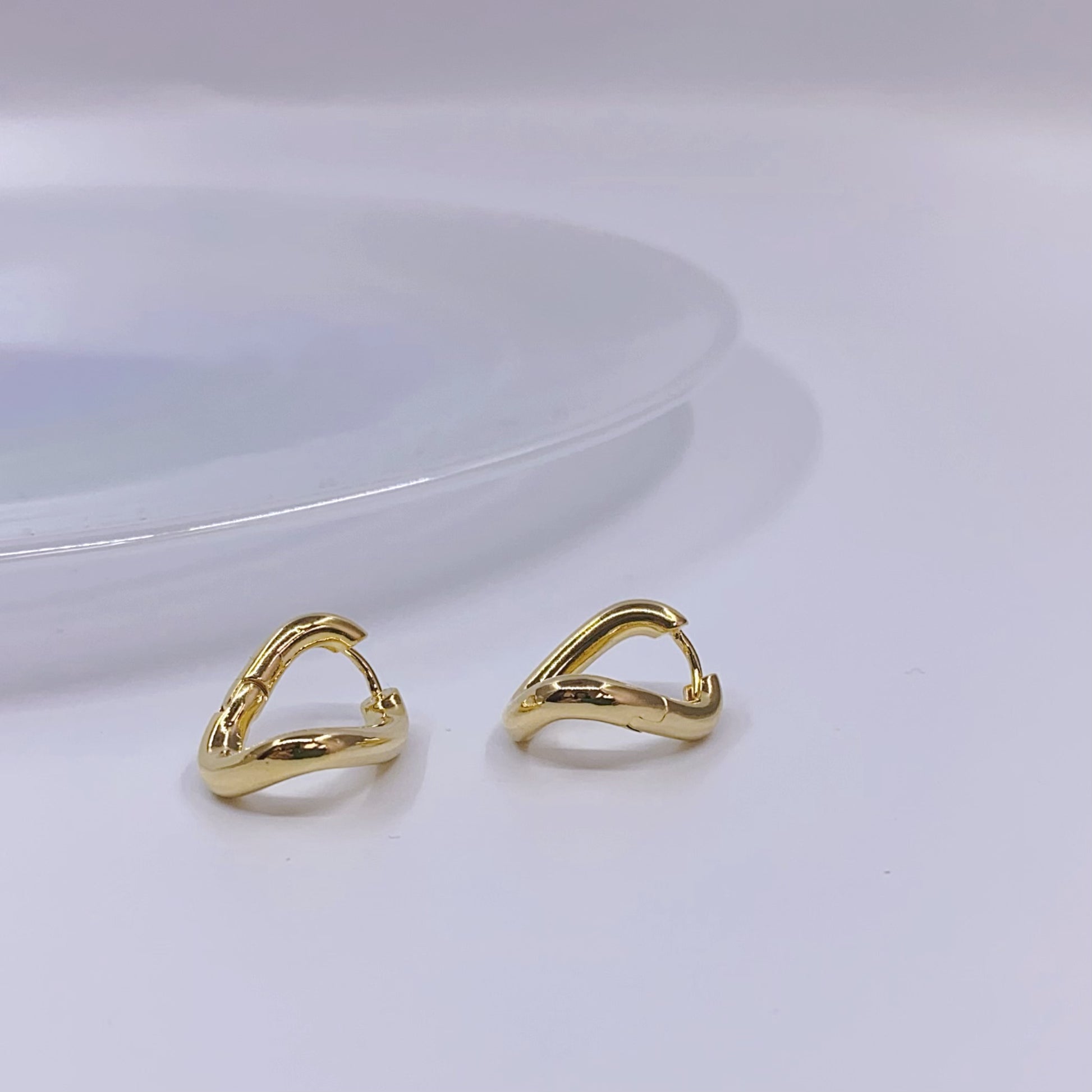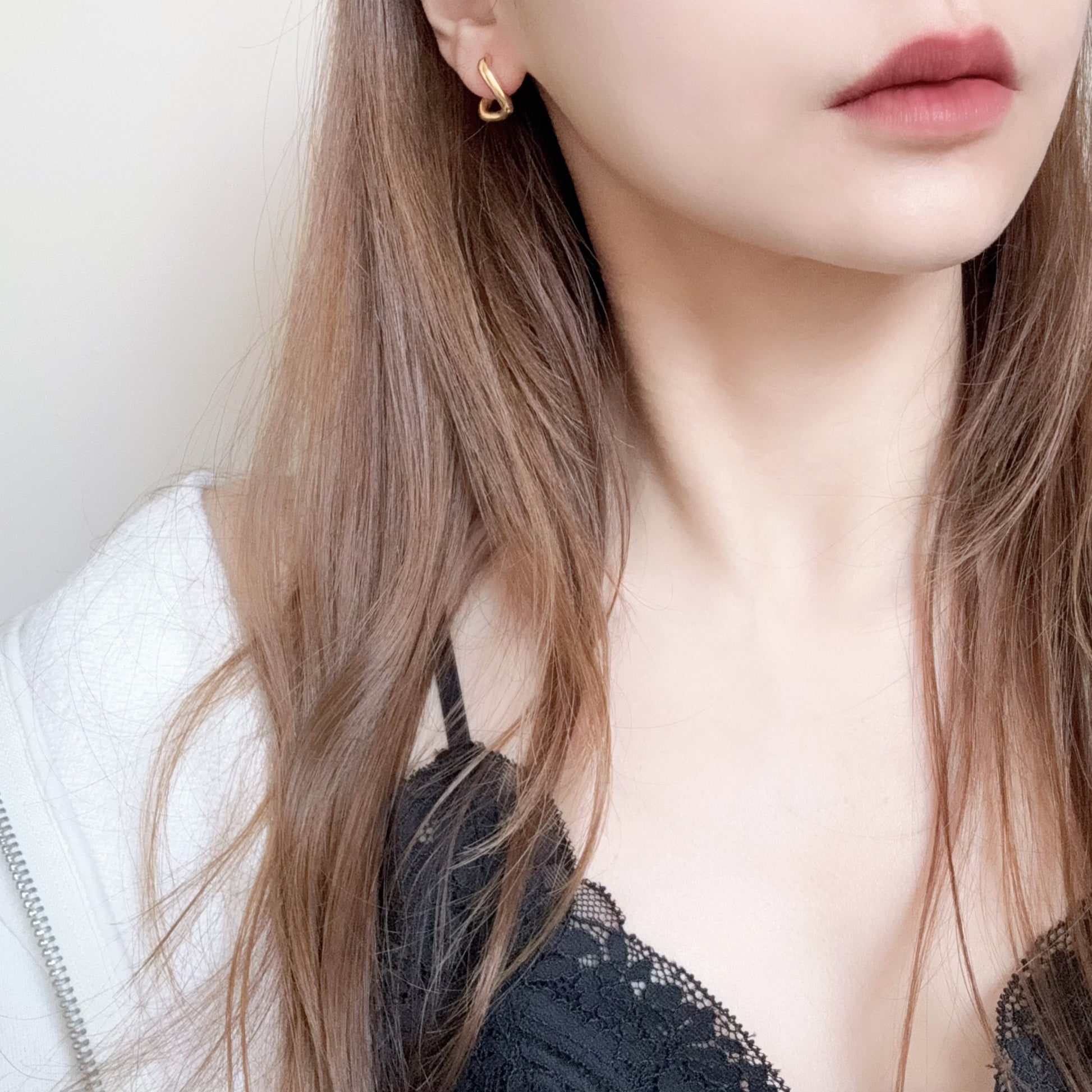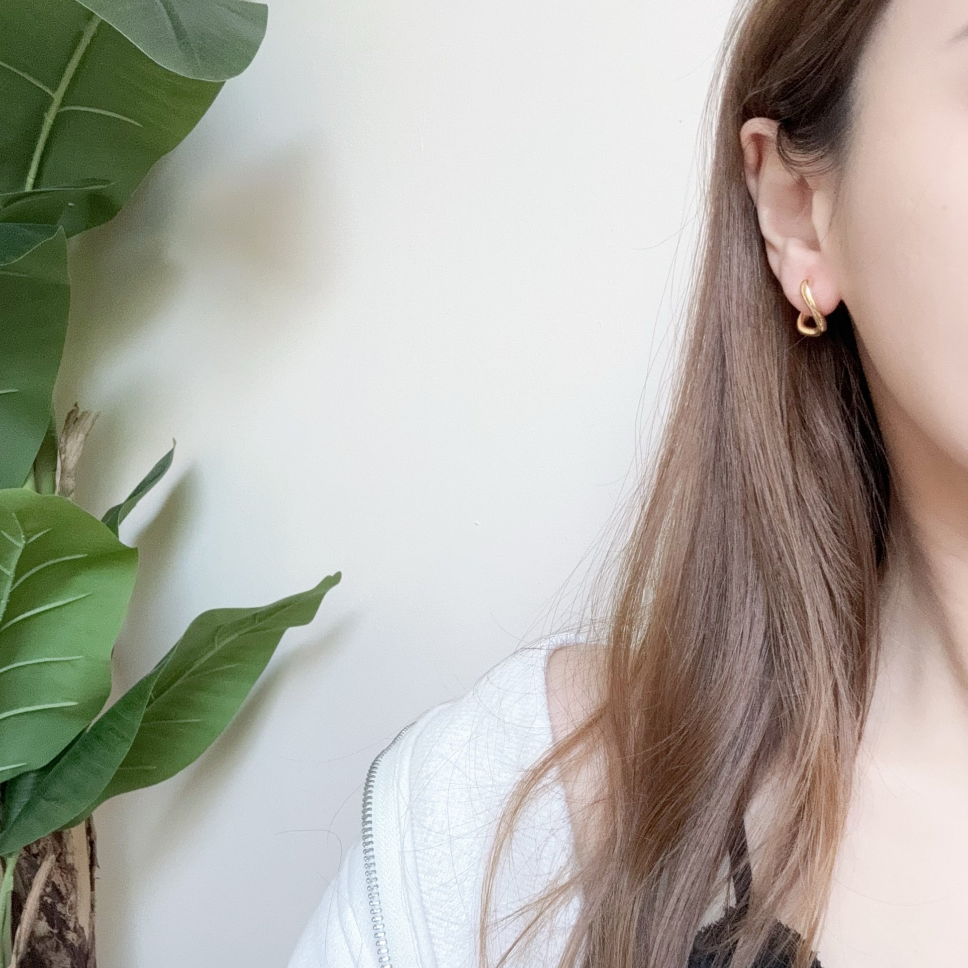 Add an elegant twist to your look with these sculptural gold mini hoops. Featuring a fluid, abstract loop design, these earrings make a subtle yet striking statement while remaining true to their minimalist charm. Their lightweight, curved shape hugs the ear for an effortlessly elevated touch.